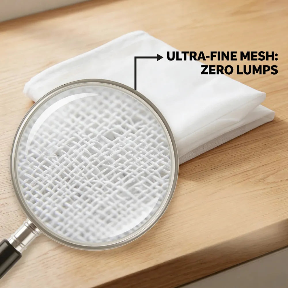 ✓ Zero Lumps: The ultra-fine weave traps 100% of the pulp. Get café-smooth milk every time.